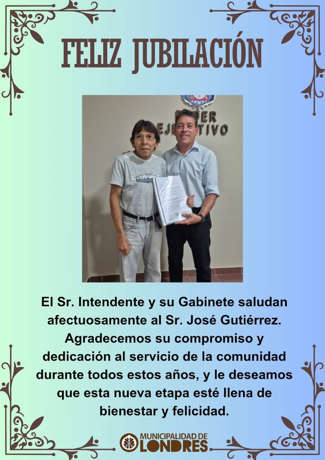 Despedimos con profundo pesar al ex Intendente Sr. Héctor Páez, quien dedicó años de su vida al servicio de nuestra comunidad….