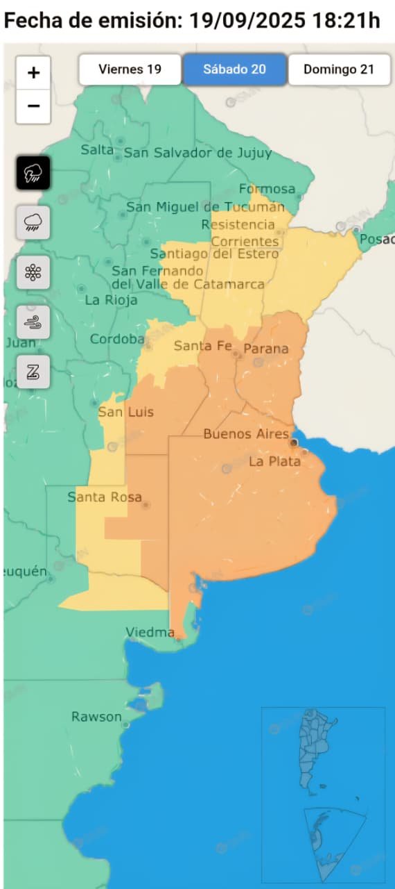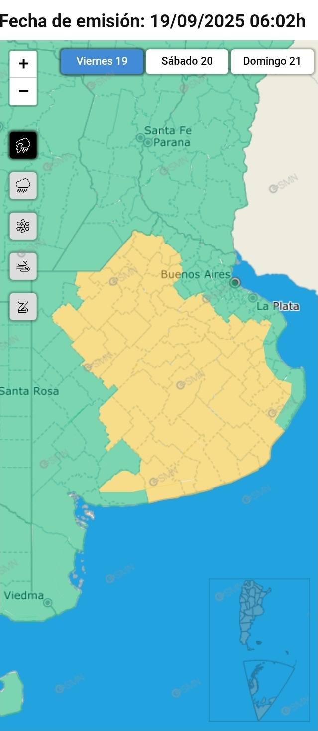18 SEP | \ud83c\udf27\ufe0f Desde ayer se registran varios eventos de lluvias que afectan al centro del pa\u00eds y el Litoral\n\n\ud83c\udf27\ufe0f Hasta el fin de semana podr\u00edan haber acumulados entre los 30 y 100 mm en sectores de La Pampa, Buenos Aires, Entre R\u00edos y Santa Fe\n\nRecomendamos seguir las actualizaciones en \ud83d\udc49 www.smn.gob.ar”,”delight_ranges”:[],”image_ranges”:[],”inline_style_ranges”:[],”aggregated_ranges”:[],”ranges”:[{“entity”:{“__typename”:”ExternalUrl”,”__isEntity”:”ExternalUrl”,”url”:”https:\/\/l.facebook.com\/l.php?u=http\u00253A\u00252F\u00252Fwww.smn.gob.ar\u00252F&h=AT3Q2pM08PVkMSmLCb2PFQJPpdtQgH0Scln0wjOMz-Mwu5yeoiWMLHe3KztHa99eEm6WNB-m0Dst5V8f6fnJLdxuTWYOwhyAJ5-VBMbSMoAlT0j4fvO2xnIq40ed__lqhrhLQcI8uYwdGouTIGEqHt4wsluLQ2-2pZQlpw&s=1″,”external_url”:”http:\/\/www.smn.gob.ar\/”,”__isWebLinkable”:”ExternalUrl”,”web_link”:{“__typename”:”ExternalWebLink”,”url”:”http:\/\/www.smn.gob.ar\/”,”fbclid”:”IwZXh0bgNhZW0CMTEAAR5D3xFWU0147kXrEeW-JGHQ93KZoP1LAr_JAPSbF6mWhCRVoLyjqXWKPoKevQ_aem_6DigDCRz_qSQ01FElOeCQQ”,”lynx_mode”:”ASYNCLAZY 18 SEP … Leer más