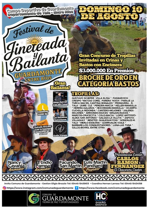 𝓕𝓮𝓼𝓽𝓲𝓿𝓪𝓵 𝓭𝓮 𝓙𝓲𝓷𝓮𝓽𝓮𝓪𝓭𝓪 𝔂 𝓑𝓪𝓲𝓵𝓪𝓷𝓽𝓪 ℂ𝔸𝕄ℙ𝕆 𝔻𝔼ℙ𝕆ℝ𝕋𝕀𝕍𝕆 𝔻𝔼 𝔾𝕌𝔸ℝ𝔻𝔸𝕄𝕆ℕ𝕋𝔼 𝔻ℙ𝕋𝕆 𝕋𝔸𝕃𝔸 ℙℂ𝕀𝔸 𝔻𝔼 𝔼ℕ𝕋ℝ𝔼 ℝ𝕀𝕆𝕊 𝑷𝒊𝒍𝒄𝒉𝒂𝒔 𝒈𝒂𝒖𝒄𝒉𝒂𝒔, 𝒑𝒆𝒍𝒂𝒋𝒆, 𝒄𝒐𝒍𝒐𝒓 𝒚 𝒄𝒐𝒓𝒂𝒋𝒆 𝒏𝒂𝒄𝒊𝒐𝒏𝒂𝒍! Presentacion de Omar Olivera y su conjunto, Estilo Vargas y Diego Galvan y los del Fuego @seguidores @destacar