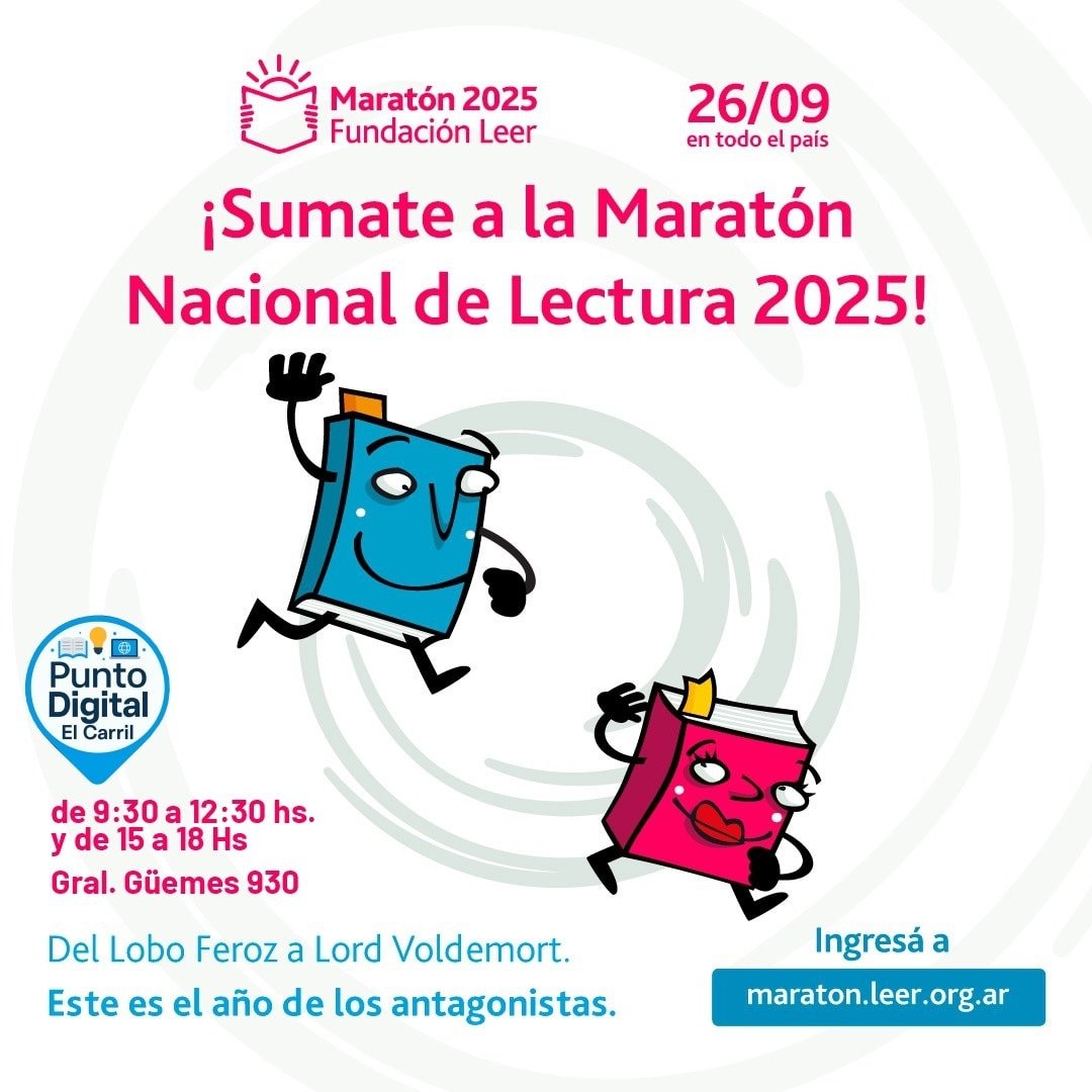 📚 *MARATON DE LECTURA 2025* – La Municipalidad de El Carril, a través de Punto Digital, invita a toda la comunidad y especialmente a los establecimientos educacionales a participar de la Maratón Nacional de Lectura 2025 organizada por Fundación Leer, que se realizará el próximo *viernes 26 de septiembre* en todo el país. – En … Leer más
