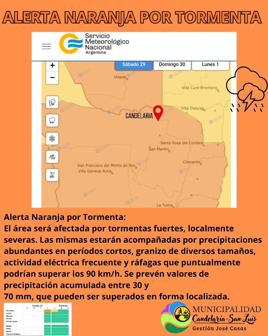 El Servicio Meteorológico Nacional emitió alerta naranja por tormentas para nuestra zona….