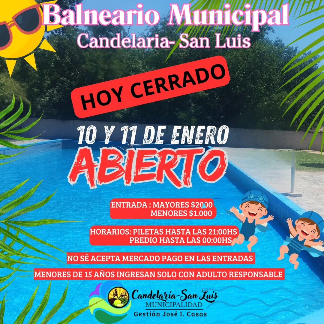 ▫️Balneario Municipal permanecerá cerrado durante el día de hoy porque aún Rige la alerta meteorológica para el día de hoy. 🌤️ Si las condiciones mejoran, abrirá con normalidad los días 10 y 11 de enero. #municipalidaddeCandelaria #GestiónJoséCasas #balneariomunicipal ———————————————– Todos los días InfoMunicipios publica en su portal las noticias más importantes de 2900 municipalidades y … Leer más