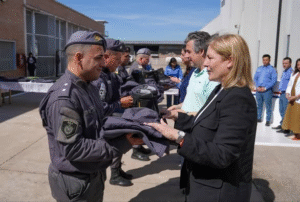 La vicegobernadora, Gisela Scaglia, y el ministro de Justicia y Seguridad, Pablo Cococcioni, entregaron uniformes