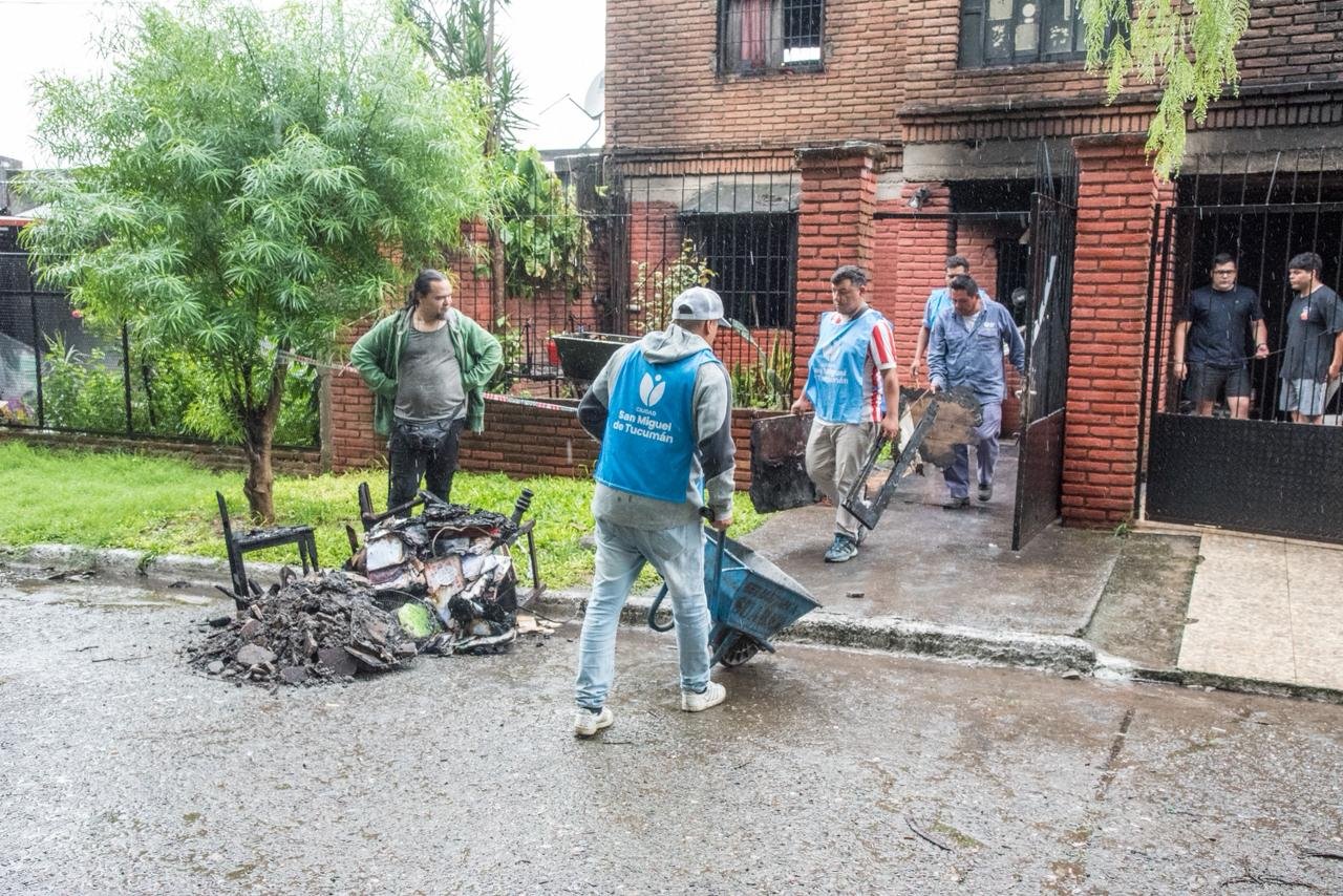 💬 “Esto empieza hoy y va a llevar unos días de tareas hasta terminar la limpieza general. El incendio abarcó todo el domicilio y quedó en total destrucción, así que va a ser un trabajo de varios días”, señaló Sofía Prado Budeguer, secretaria de Atención al Ciudadano.