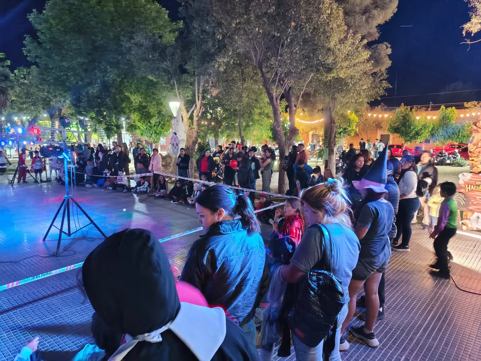 La plaza principal se transformó en un verdadero escenario de Halloween, donde grandes y chicos disfrutaron de una velada única.