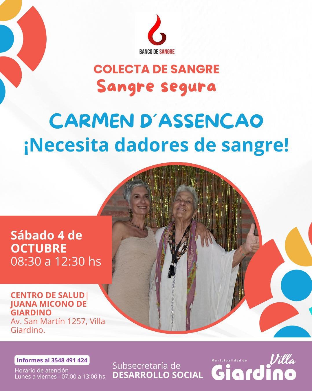 📍 La colecta se llevará a cabo el sábado 4 de octubre, de 8:30 a 12:30 horas, en el Centro de Salud Juana Micono de Giardino (Av. San Martin 1257).