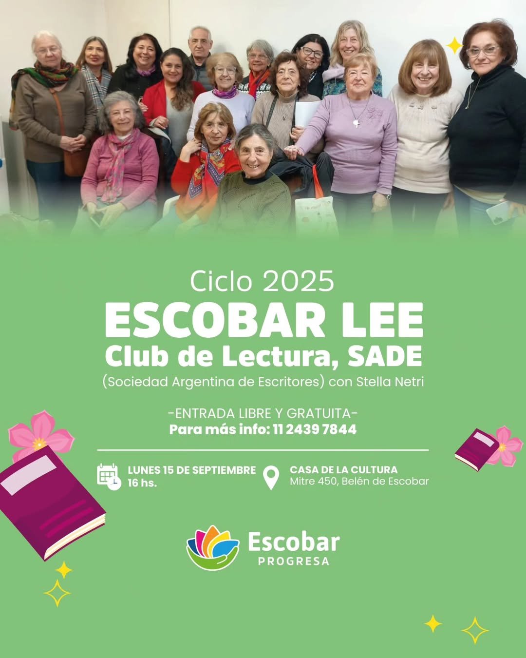 Este lunes 15 de septiembre a las 16 hs te esperamos en la Casa de la Cultura para compartir una nueva edición del Club de Lectura SADE, coordinado por Stella Netri.