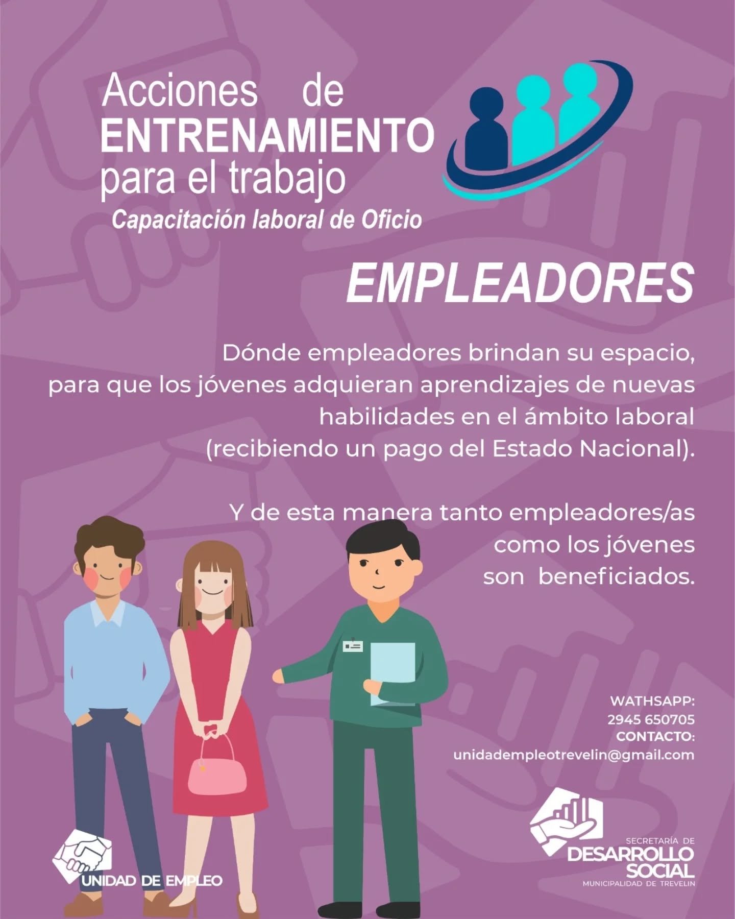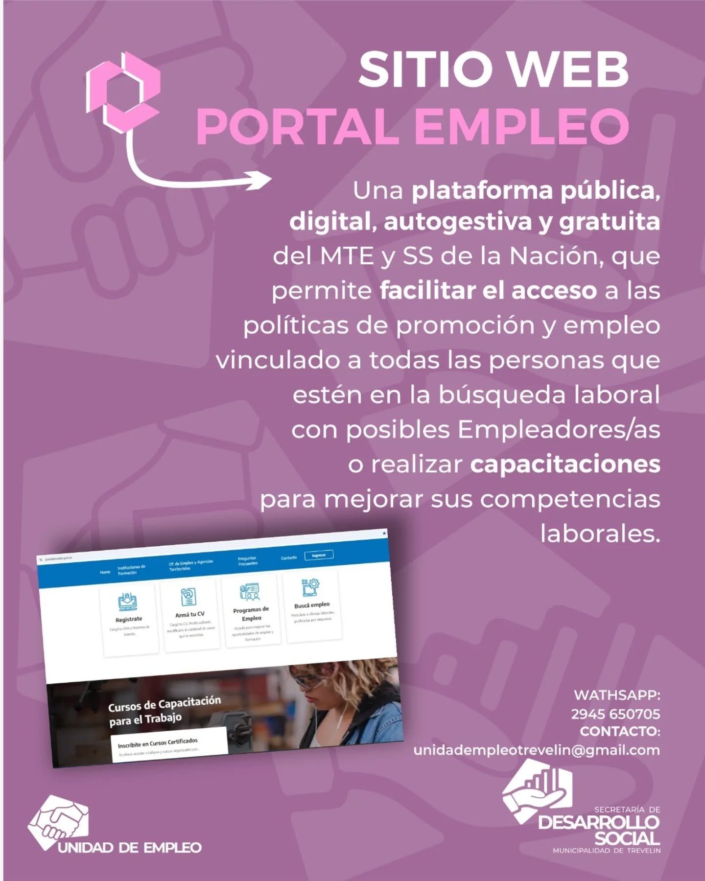 📱Contactate con la Oficina de Empleo al WhatsApp 2945-650705 o al mail unidadempleotrevelin@gmail.com