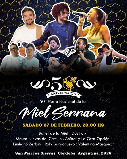 La 50° Fiesta Nacional de la Miel Serrana se vive durante tres noches en San Marcos Sierras, celebrando nuestra identidad, la música y la cultura que nos une.