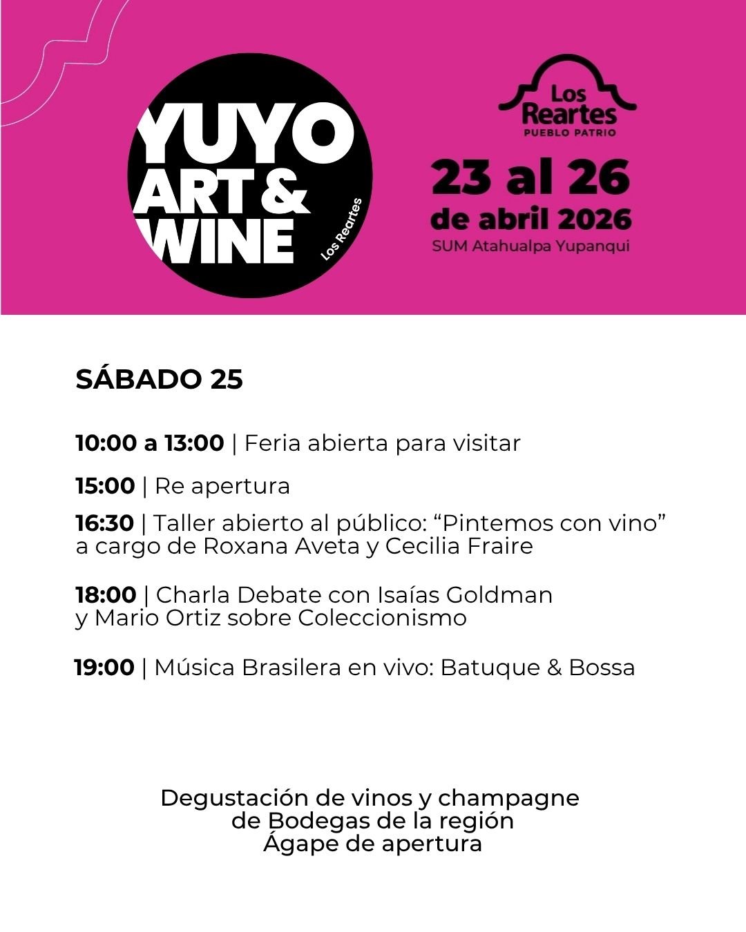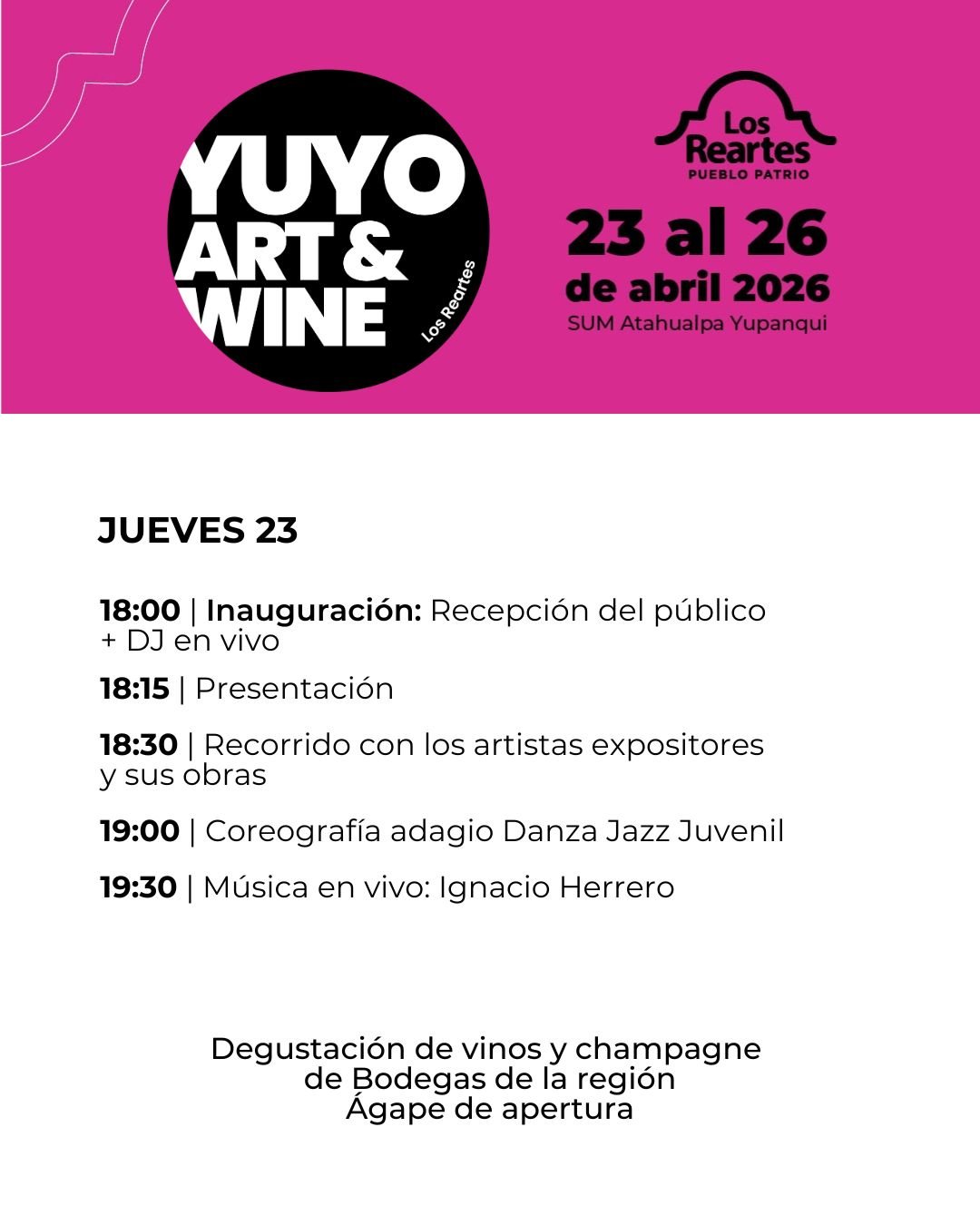 Desde la Comuna de Los Reartes invitamos a participar de la 1° edición de Yuyo Art & Wine Los Reartes 2026, una propuesta que nace para acercar el arte contemporáneo a la comunidad, fortalecer la cultura regional y generar nuevas oportunidades de encuentro, difusión y proyección para artistas y galerías. ✨