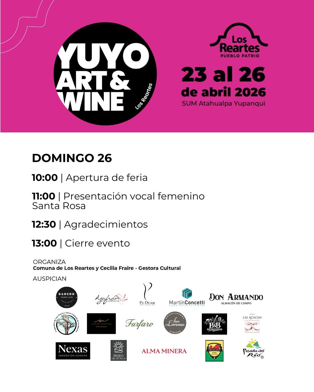 🎨 Yuyo Art & Wine Los Reartes 2026: cuatro días para disfrutar del arte, la música y el encuentro